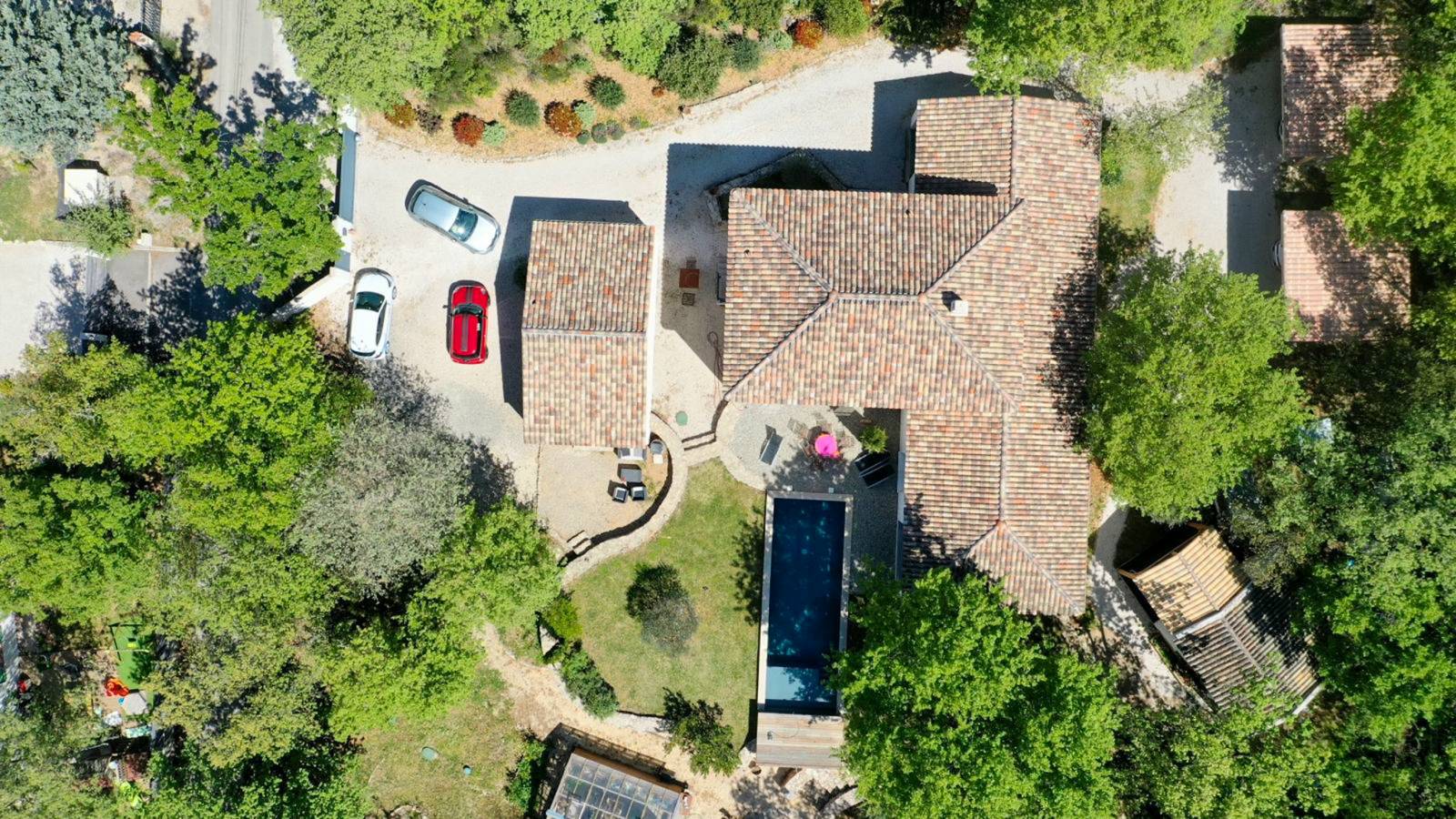 Accès direct au jardin et à la piscine, offrant une autonomie complète aux occupants.